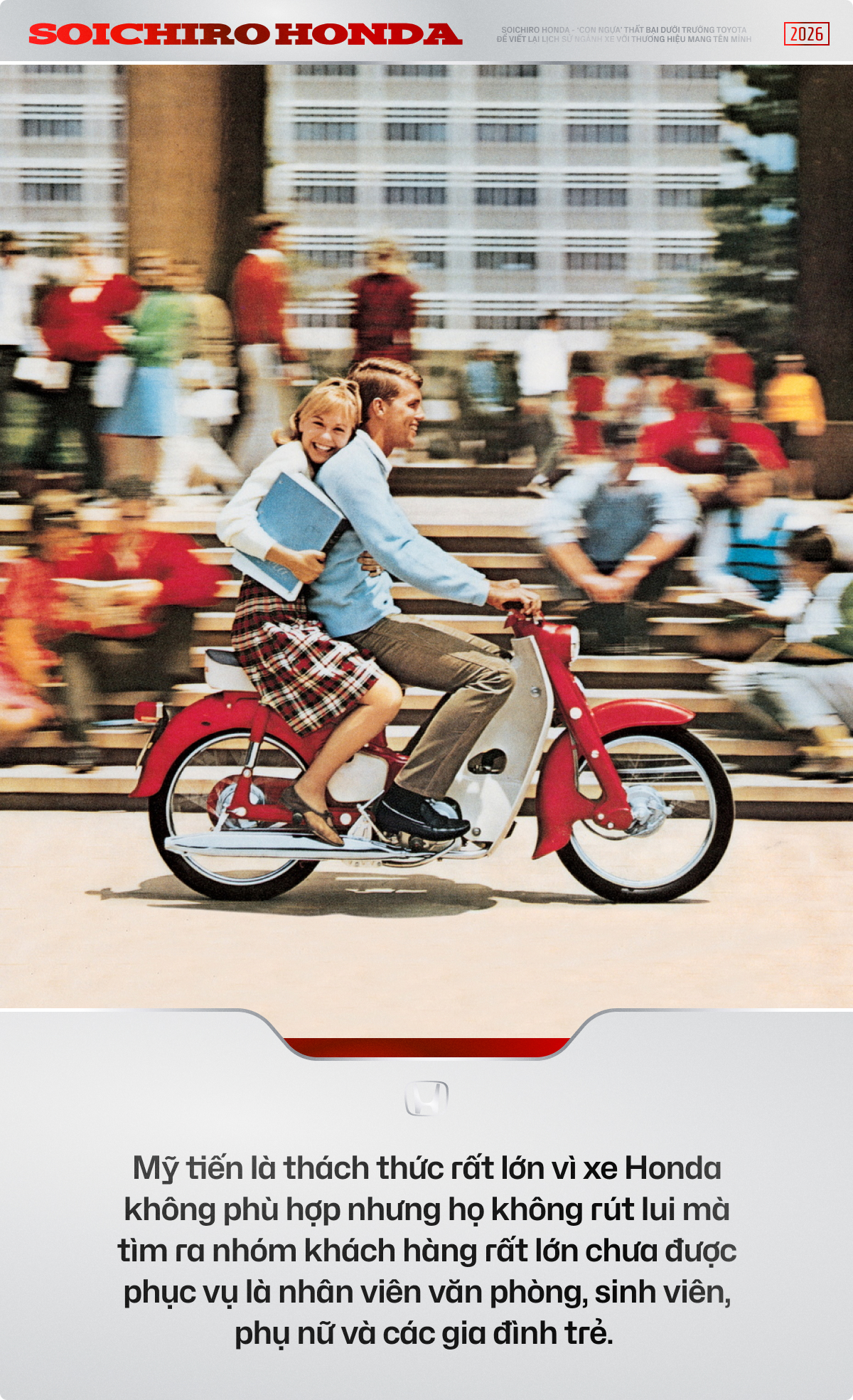 Cuối thập niên 1950, Honda Motor bắt đầu mở rộng ra ngoài Nhật Bản, với Mỹ là thị trường trọng điểm và cũng là thách thức lớn nhất. Thời điểm đó, xe máy tại Mỹ không đơn thuần là phương tiện giao thông. Nó gắn chặt với hình ảnh của những cỗ máy phân khối lớn, tiếng pô ầm ĩ và văn hóa nổi loạn, đặc biệt trong các cộng đồng “biker” hậu chiến.